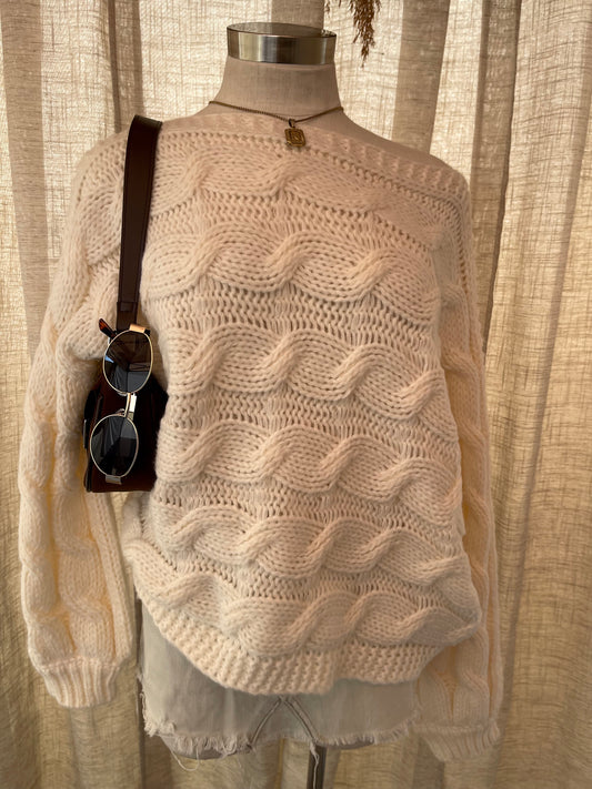 Winter Woven Knit Sweater- Ivory