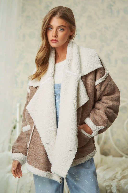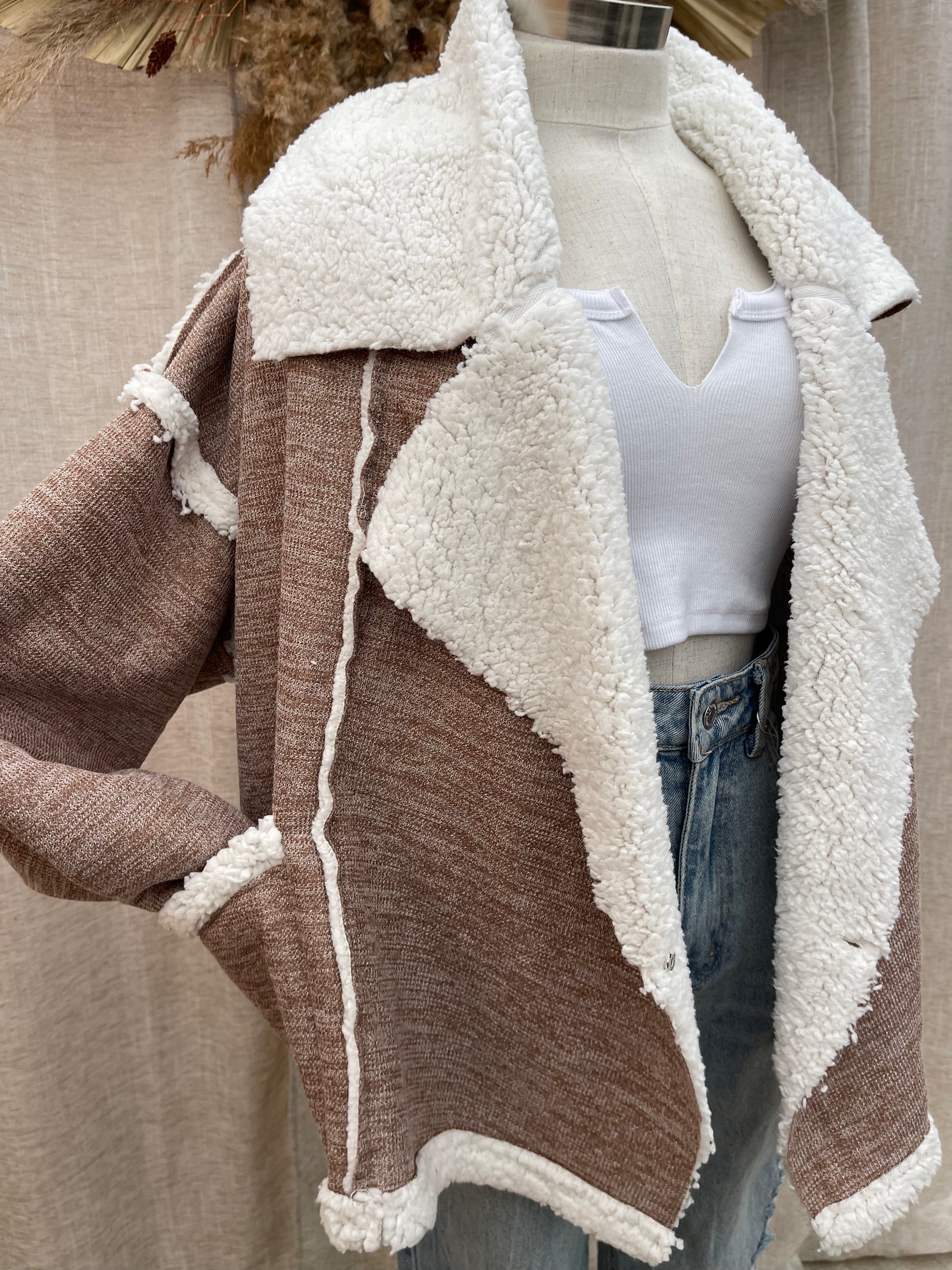 Bundle up for a trip with our bundle up jacket. Very soft and cozy. Has functional pockets. Solid fur long sleeve. Runs oversize. Model is wearing a small.