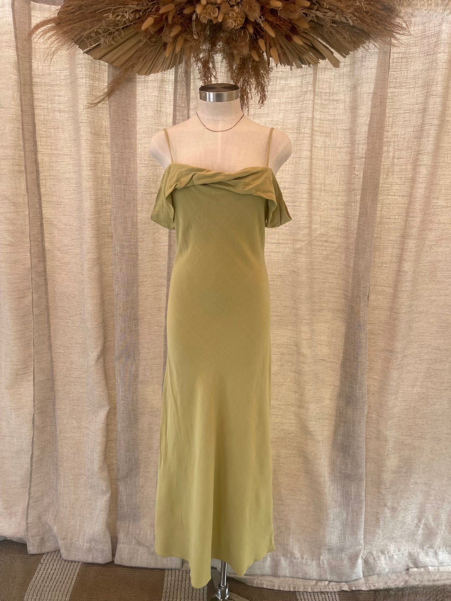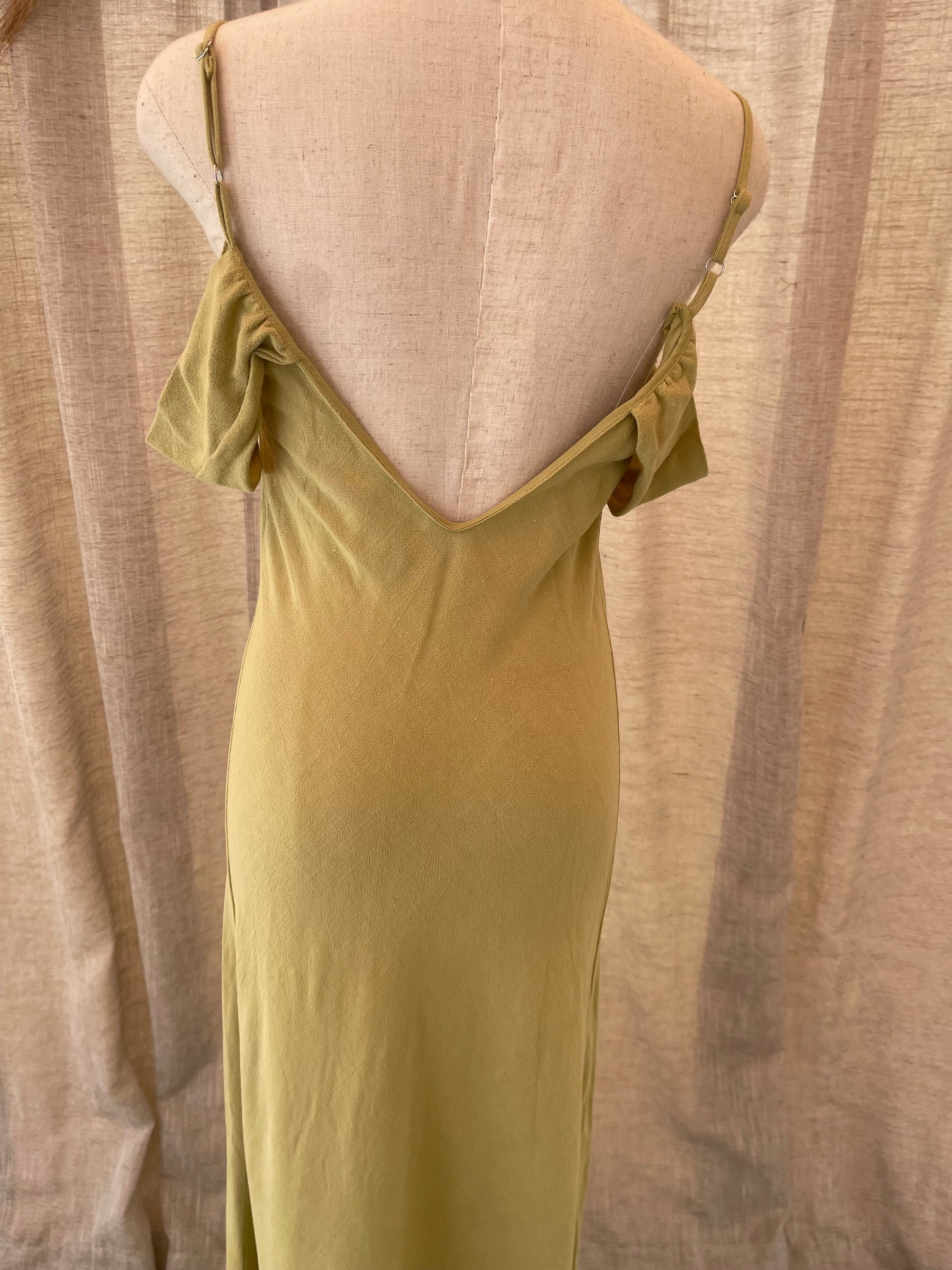 Chasing the sun with this dress, perfect for a lot of occasions. True to size. Dainty cami straps (adjustable) that lead to a drop shoulder neckline. Dress hugs your waist and hips before falling into a maxi hem. Model is 5'7 wearing a small for reference.