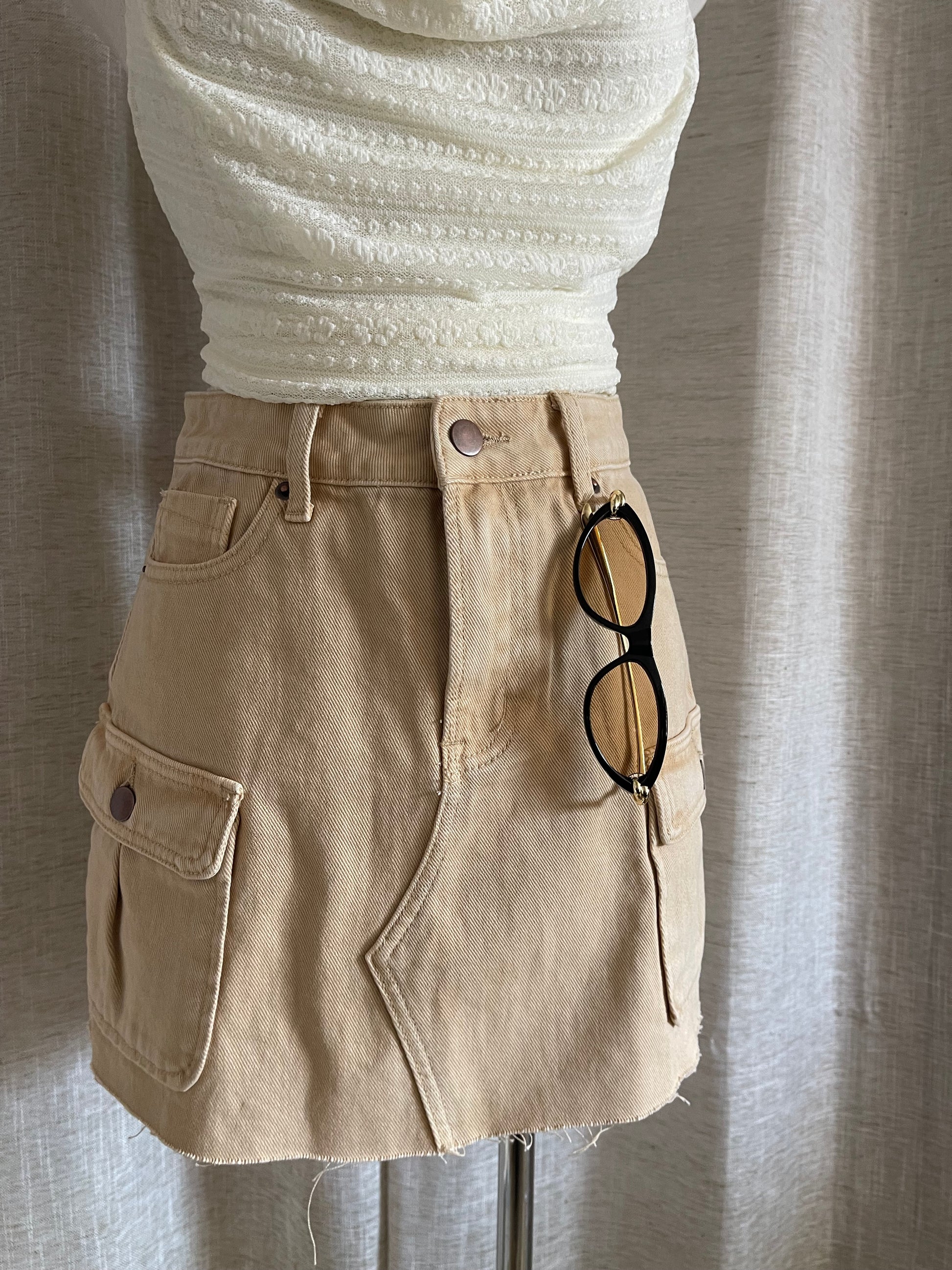 High waisted cargo skirt, dress it up down depending on the vibe! Fit is true to size. Keep it mind it does not stretch.