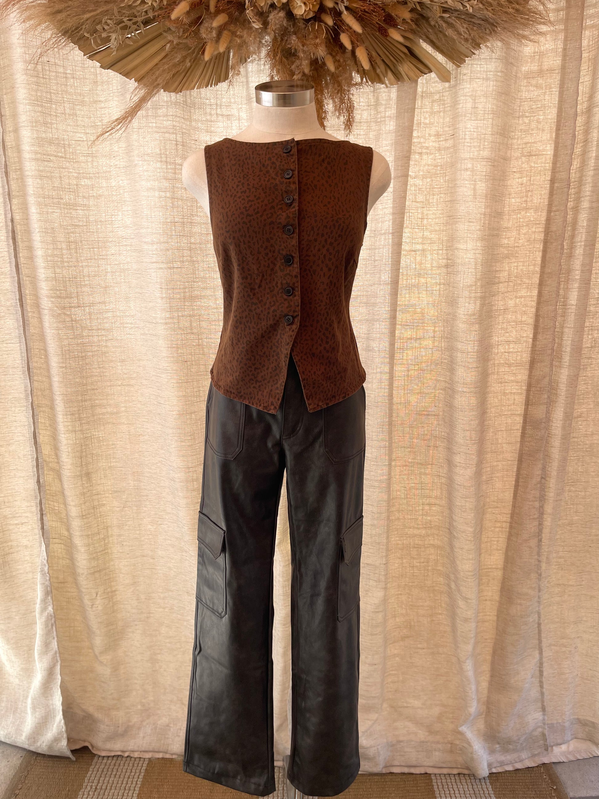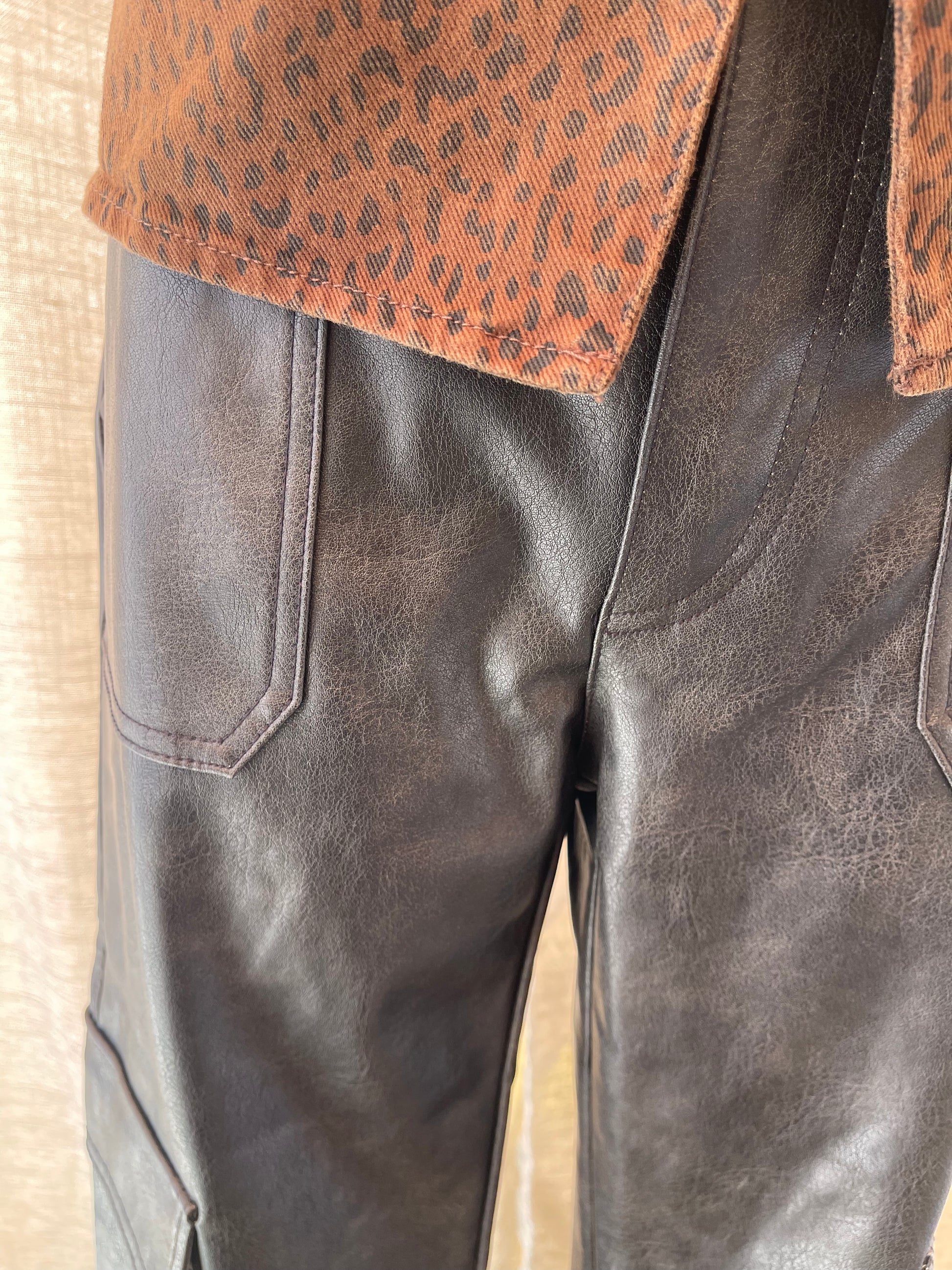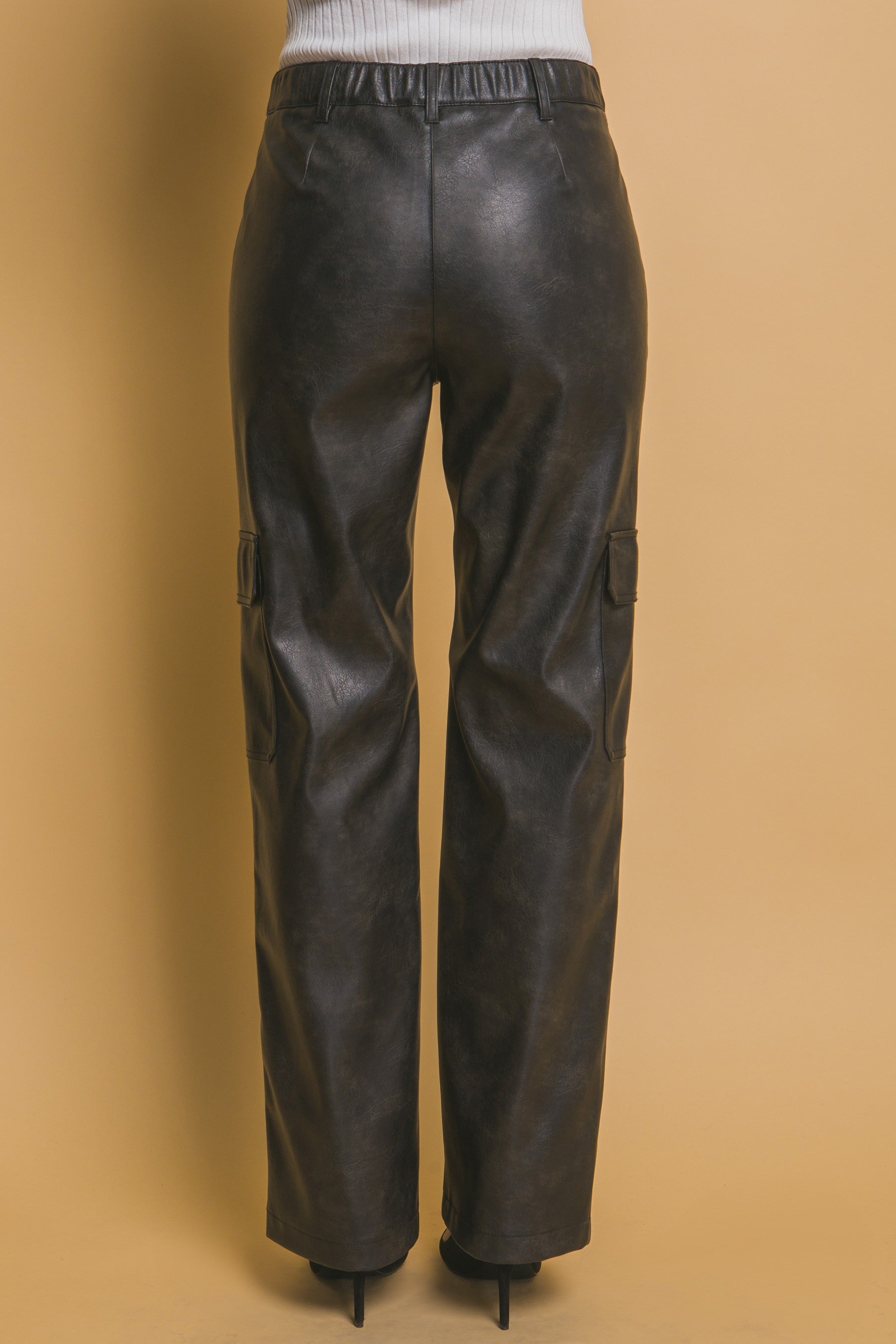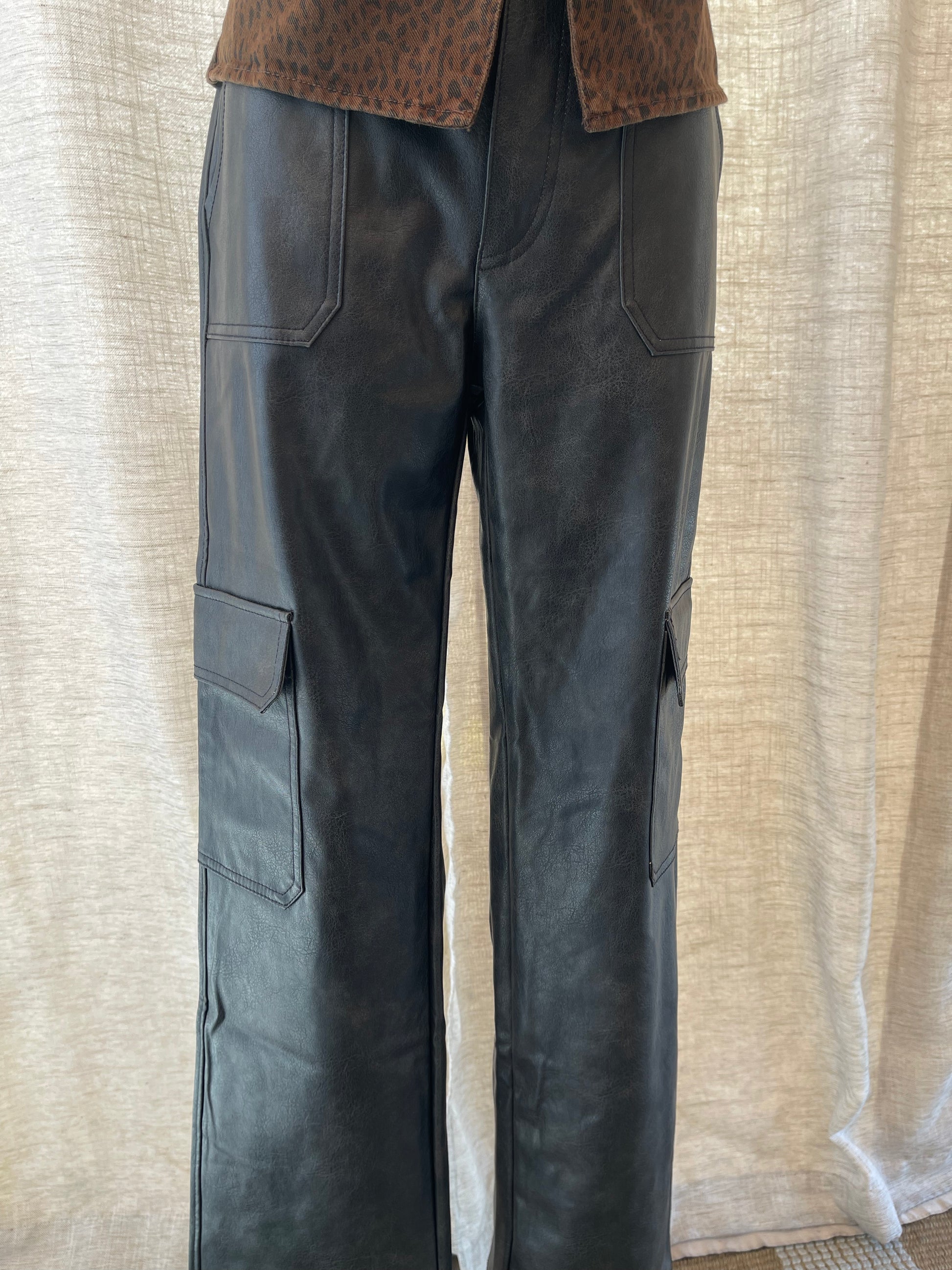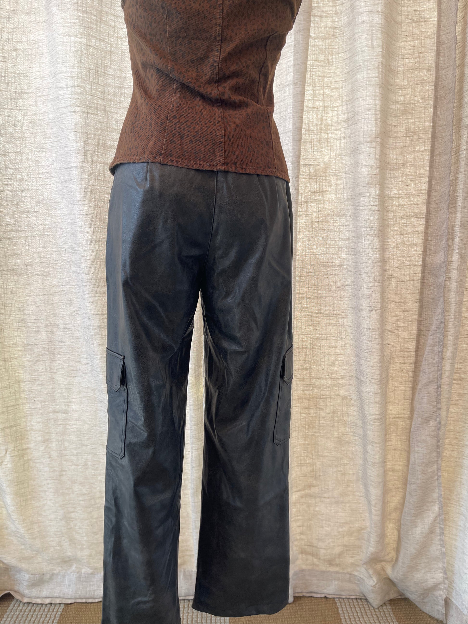 Must have leather pants in your wardrobe for winter. Dress it up with heels for a night out or sneakers for a relaxed fit. Fits true to size. Model is wearing a size small. The back of the waistband has an elastic and stretches.