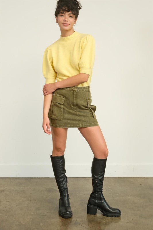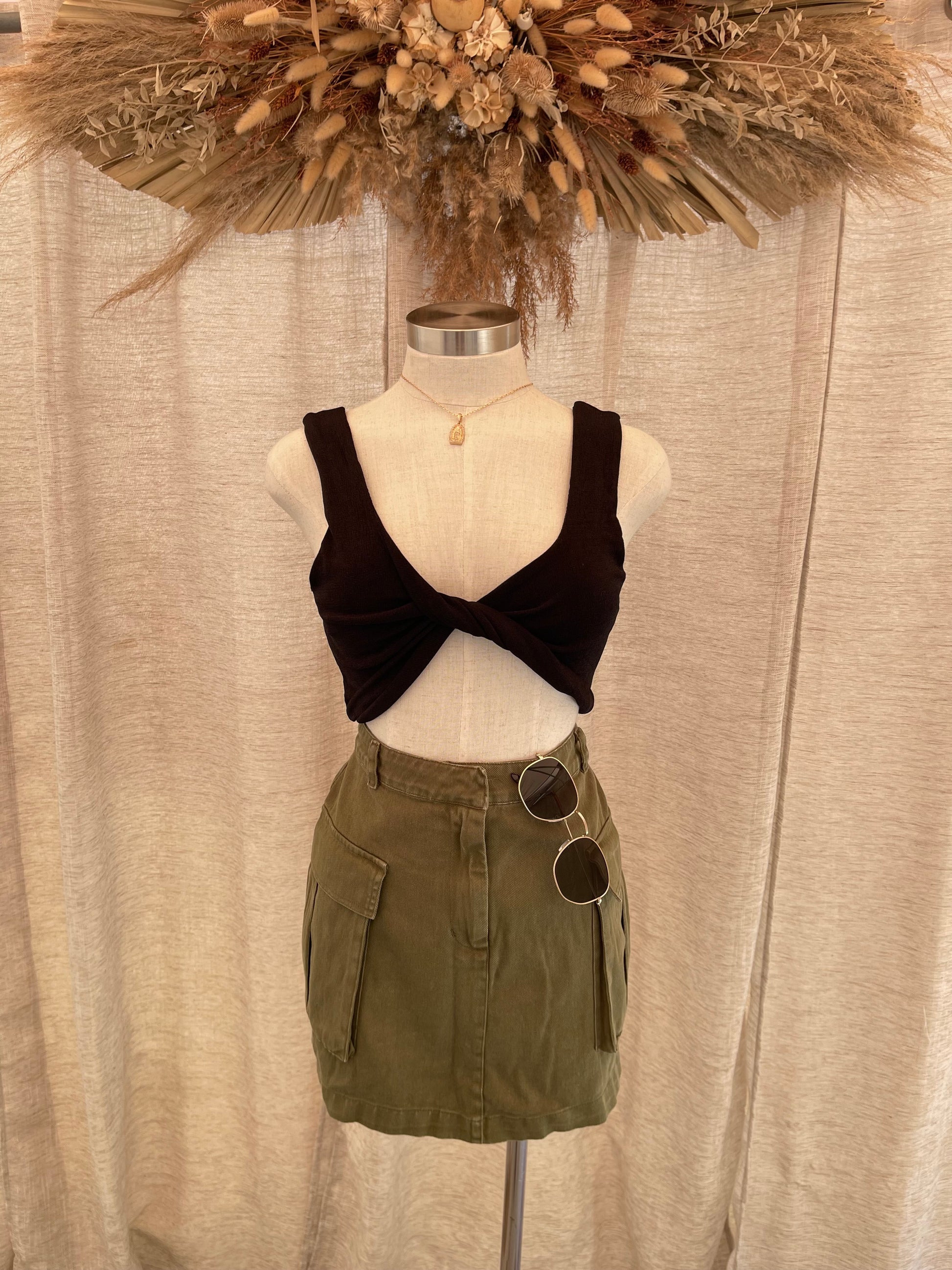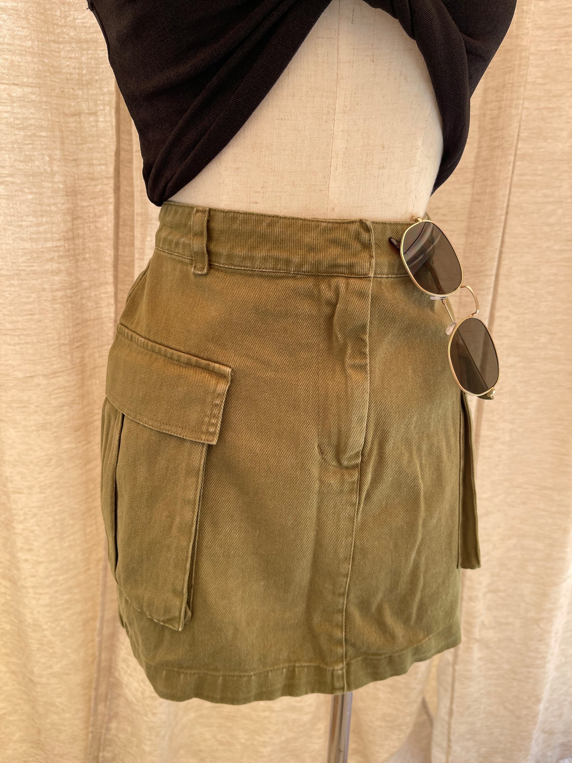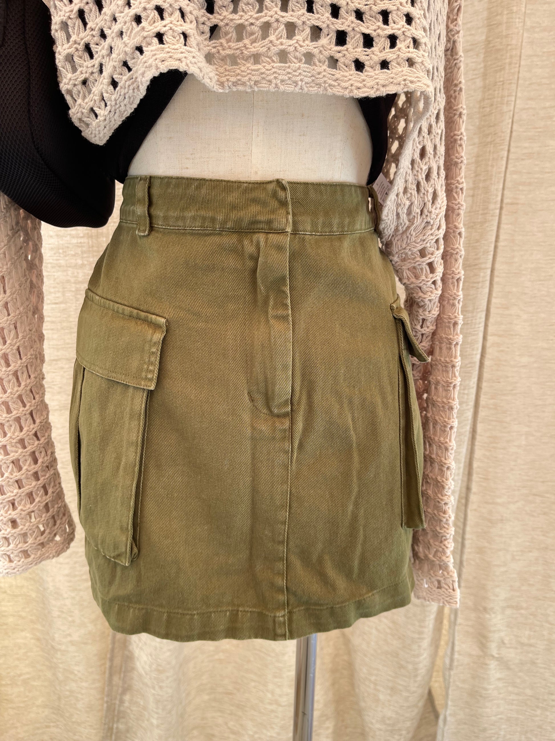 Hot shot cargo skirt to year it all wear long. Dress is up or down with sneakers or heels. Fits true to size. Does not stretch.
