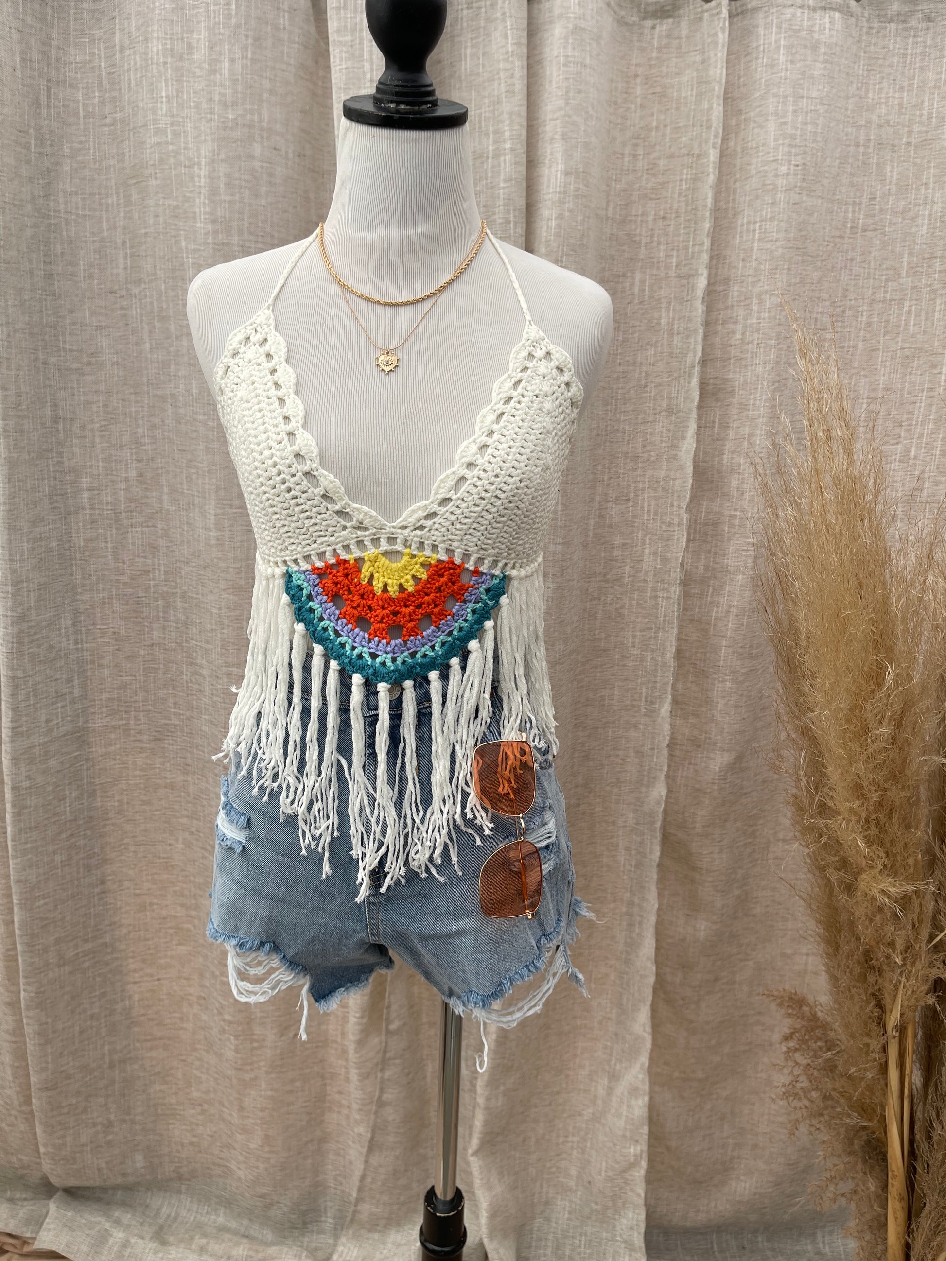 Let your inner Vanessa Hudgens shine with the Hudgens crotchet top. Can be worn with an adhesive strapless backless bra. Fits true to size.