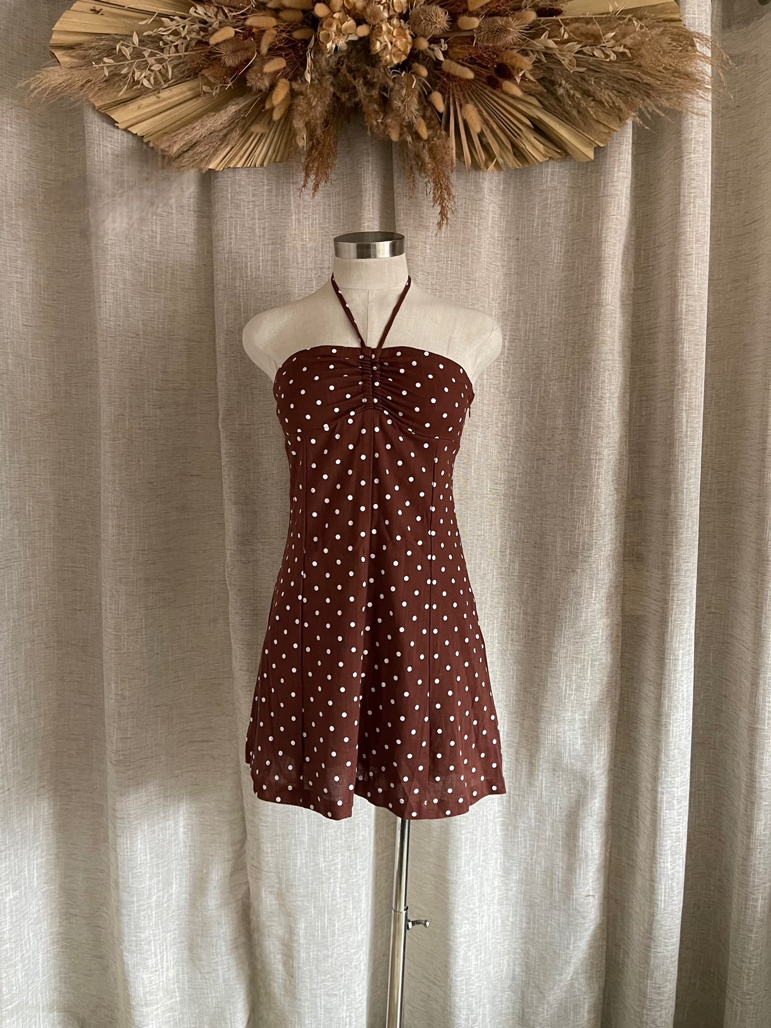 Your next summer essential dress, dress it up with kitten heels, or down with white sneakers for a casual look. Fit is true to size, has a side zipper, has adjustable tie back. Model is wearing a size small and 5'8. Also available in brown! Search "On The Dotted Line Dress- Oatmeal"