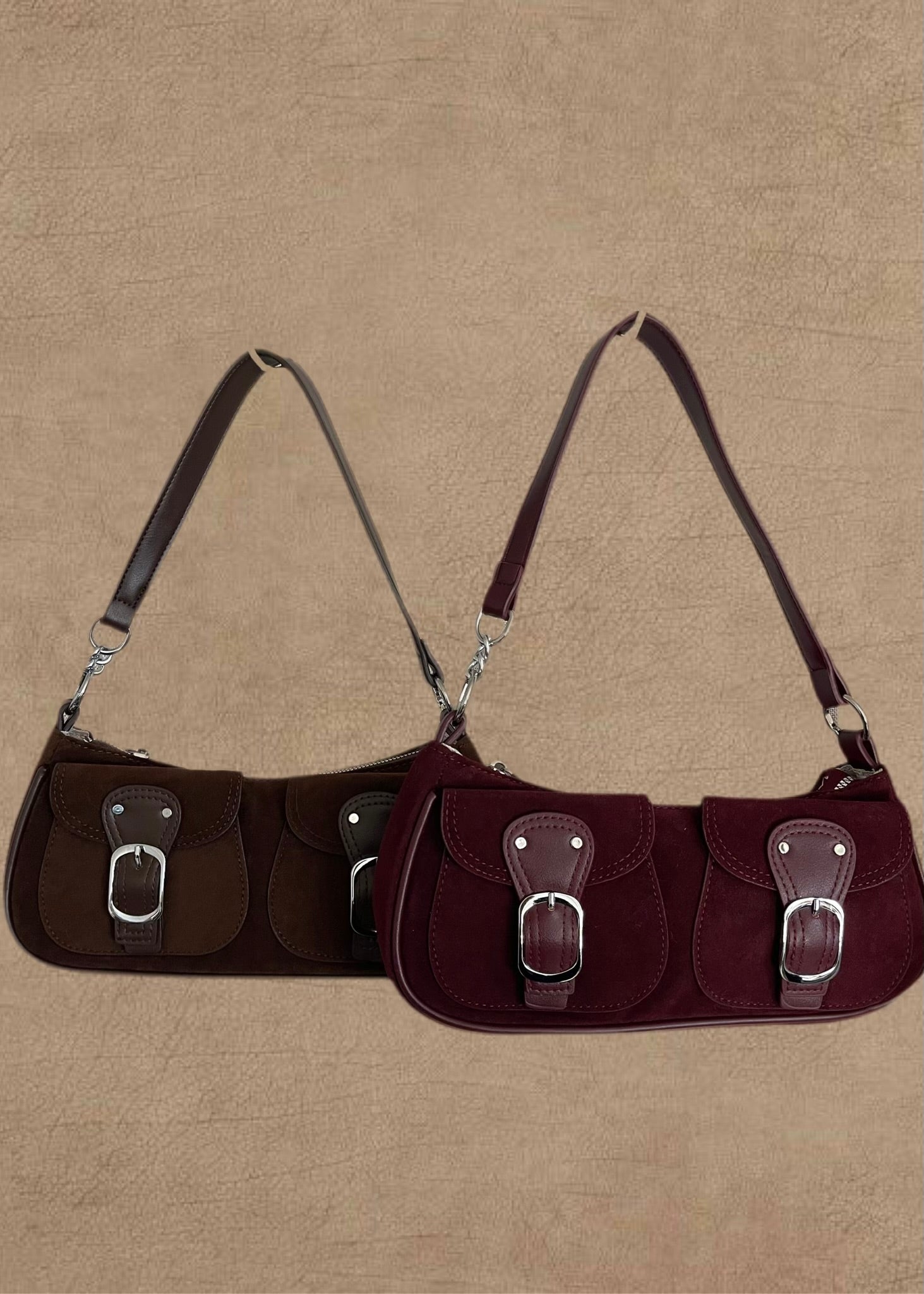 Has separate straps to wear it as a crossbody. Available in dark brown and burgundy.