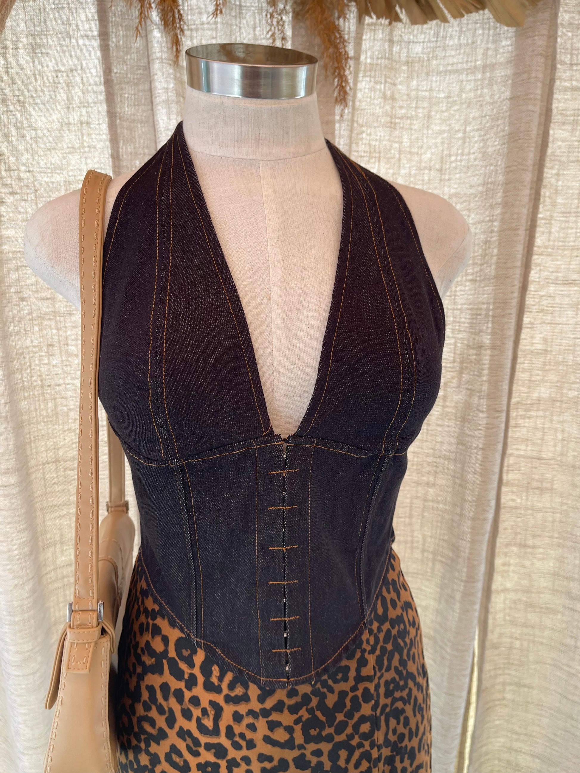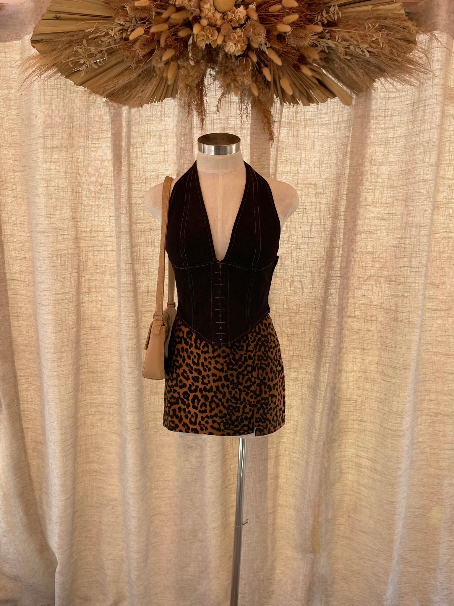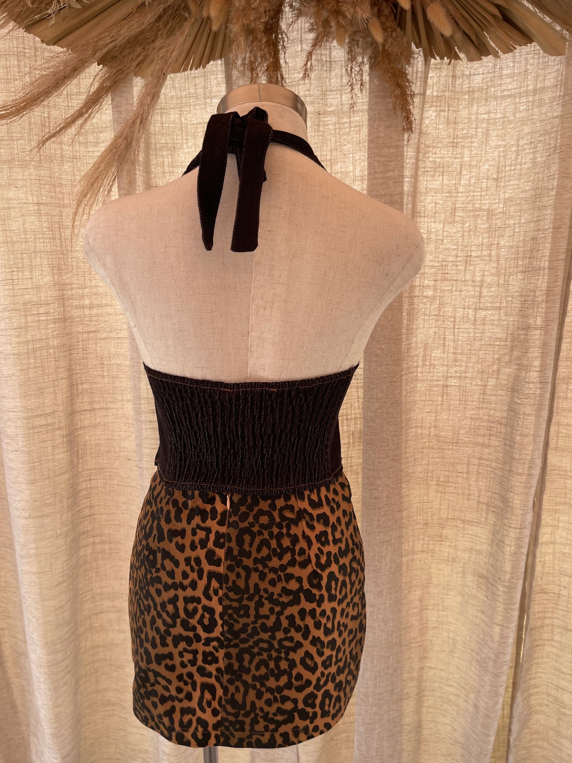 Halter top with a twist, features a plunging neckline, adjustable halter neck and a low open back. Has a side zipper and a smocked back. Fit is true to size.